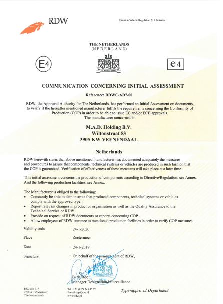 24-04-2019certification of production process through approval of RDW E4 - Conformity of Production (COP)
